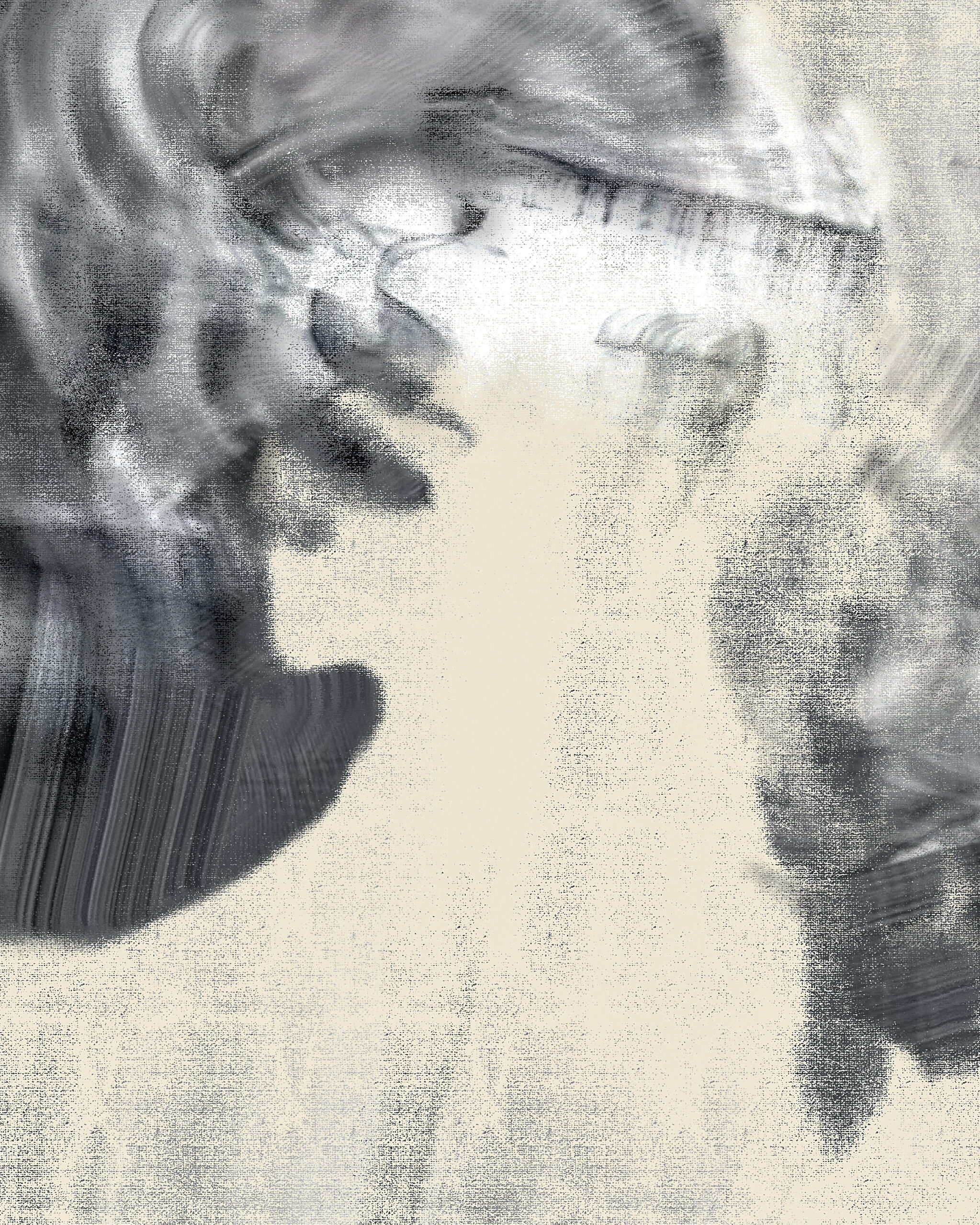Rather than a controlled stroke, the image reveals a process. Layers accumulate, blur, and shift. Edges lose precision. The gesture no longer asserts mastery; it negotiates its own limits.